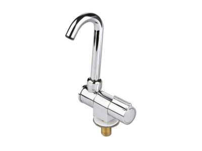 Kaltwasserhahn aus verchromtem Messing mit einzelnem Bedienknopf und rundem Klappauslauf