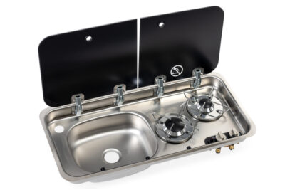 Kocher-Spülen-Kombination – 2-flammig mit Sicherheitsglas