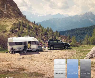 Perfect Roof 2500 12V 4m Gehäuse weiß Auszug 2,75m Tuch Horizon Grey