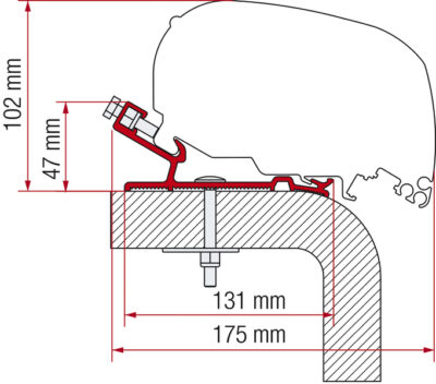 Fiamma Adapter Ford Transit H3 / L4 ab 2014 – 400 cm – UK-Version