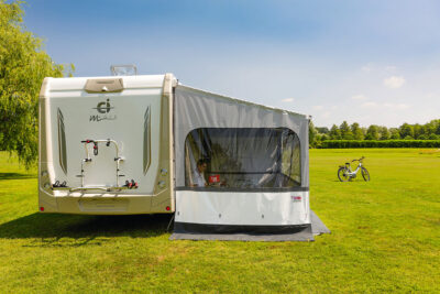 Sonnen- und Regenschutz für Fiamma Markisen F43 – Wetterfeste Seitenteile mit Fenster