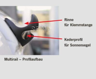 Multirail – Regenrinne, Sonnensegel- und Dachträgerbefestigung in einem (KR Rechts)