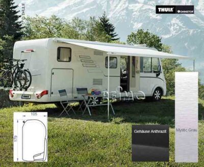 Thule Markise Omnistor 5200 12V weiß, 5,0m Tuch Mystic Grey
