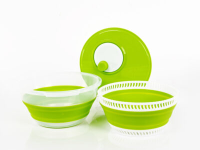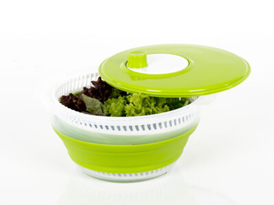 Faltbare Salatschleuder mit Deckel inklusive Sieb und Schüssel – Weiß/Grün