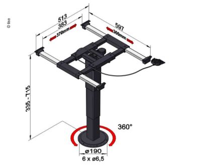 Einsäulenhubtisch Liftgestell – Höhenverstellbar 335-715 mm – 360° drehbar
