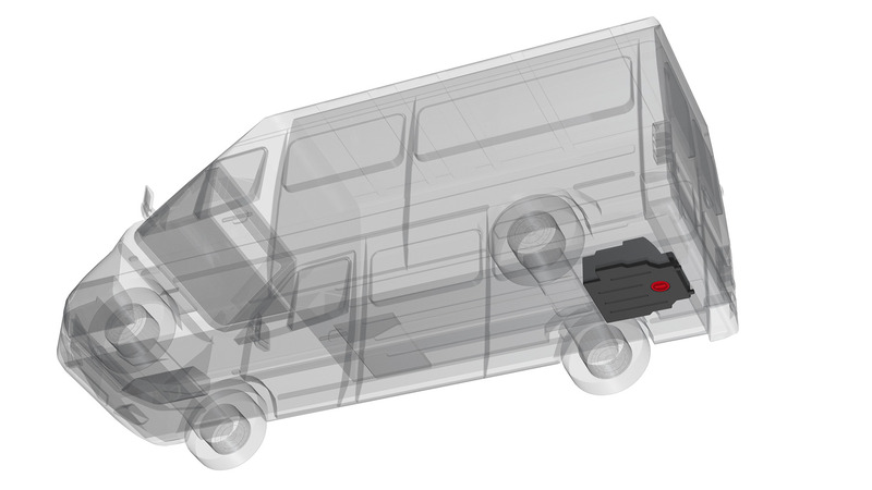 Unterfl urtank in Schwarz aus PE. Montage hinter der Hinterachse.