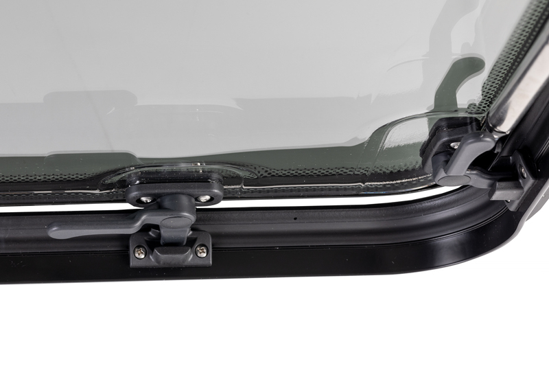 Die Neuheit im Fahrzeug-Fenster Segment! Das Fenster RW Fusion vereint eine Echtglasscheibe auf der Außenseite mit einer Acrylglas-Innenscheibe. ACRYLGLAS, SICHERHEITS GLAS, DOPPELT VERGLAST, LICHTDURCHLÄSSIGKEIT: 30%, SCHEIBE NACH INNEN GEWÖLBT, UV BESTÄNDIG, MIT LÜFTUNGSPOSITION, STAHL-AUSSTELLER (STUFENLOS), MATERIAL RAHMEN: ALU, FÜR WANDSTÄRKEN VON 30-40 MM, INKL. MONTAGERAHMEN, ECKRADIUS FENSTERRAHMEN: 75 mm, ECE R43. Ausschnitt B x H 350×500 mm, Außenmaß