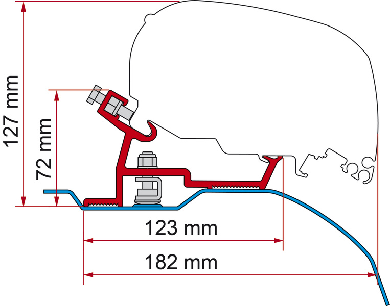 Adapter für Dachmarkisen F65, F65s und F65L 400 cm – Für Fiat Ducato und Baugleiche ab 2006
