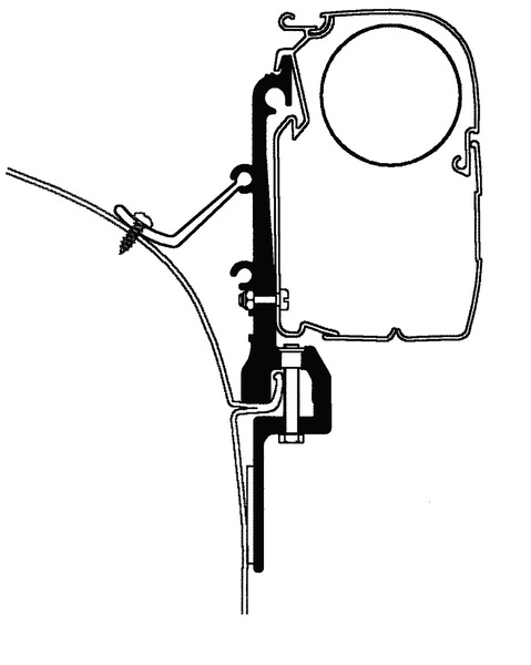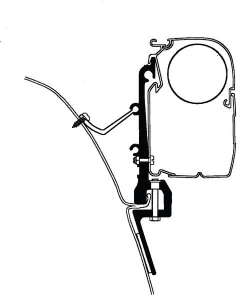 Für Omnistor Markisen 2000 / 5002 / 5500 / 5800. Für Fahrzeuge mit Regenrinne z.B. Sprinter u.a. 2 Befestigungen mit unterschiedlichen Winkelen.