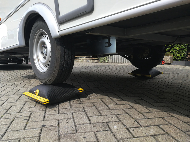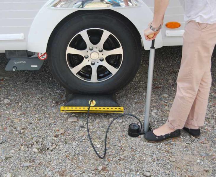 Das Ausgleichskissen Air-Lift ist ein hochbelastbares, verschleißfestes, benzin-, öl- und säurefestes Druckluft-Hebekissen. Es wurde speziell für den Einsatz an Wohnmobilen und Wohnwagen entwickelt und hat eine Tragkraft von 11 Tonnen. Mit Hilfe des Air-Lift können Bodenunebenheiten und Höhenunterschiede des Untergrundes stufenlos von 1,5cm bis 20cm ausgeglichen werden. Die komfortable und mühelose Handhabung ist ein weiterer Pluspunkt: Das Kissen wird einfach unter dem jeweiligen, anzuhebenden Rad platziert. Mit einer Hand-/Fußpumpe oder einem 12V Minikompressor kann das Gefährt innerhalb von ca 4 Minuten auf engstem Rangierraum ausnivelliert werden. Die Herstellung des Emuk Air-Lift erfolgt in Manufaktur „Made in Germany“ mit hochwertigen Materialien in sauberer handwerklicher Qualität. Pulverbeschichtete leichte Aluminium Leisten stabilisieren dabei den mit hochfesten Aramidfasern verstärkten Gummi-Druckkörper. Eine besonders dicke Gummihaut (Sandwichbauweise) verleiht dem Druckluftkissen ausreichenden Schutz gegen äußere Einwirkung durch Steine, Geröll oder Scherben. Das Riffelprofil bietet den anzuhebenden Rädern rutschfesten Halt.