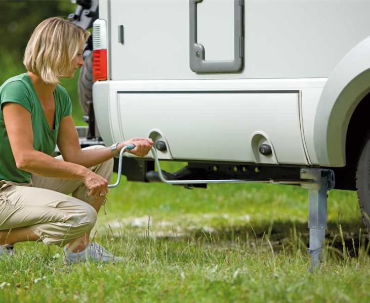 Sorgen für sicheren Stand des Fahrzeuges. Anbau an Reisemobile mit AL-KO Rahmen bzw. Rahmenverlängerung. Ab Bj 8/95 sind alle Aufnahmepunkte am Rahmen vorbereitet. Bei älteren Fahrzeugen wird die Bohrung selbst gesetzt. Robuste Hubstütze für festen und sicheren Stand. Bedienung erfolgt mit Ausdrehkurbel; selbstständiges Spannen der Hubstütze beim Hochdrehen. Freischwenkmechanismus: Wird das Reisemobil trotz ausgefahrener Stütze bewegt, klappt dies selbsttätig automatisch nach vorne und hinten. für Rahmenhöhe A beladen min. 400 beladen max. 490 Bauhöhe B min. 370 Bauhöhe B max. 510 notwendiger Bauraum L 481 Antriebswellenlänge E 200. Handkurbel nicht im Lieferumfang (Handkurbel 91327 oder 91332).