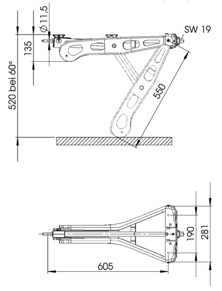 Info: Stützen sind nur für die Abstützung des Wohnwagens vorgesehen. Sie dürfen nicht als Wagenheber zum Reifenwechsel oder ähnliches verwendet werden. Bei einer Ausdrehstellung von 45° wird die maximale Traglast erreicht.Bei Reduzierung der Ausdrehstellung unter 45° reduziert sich die maximale Traglast.