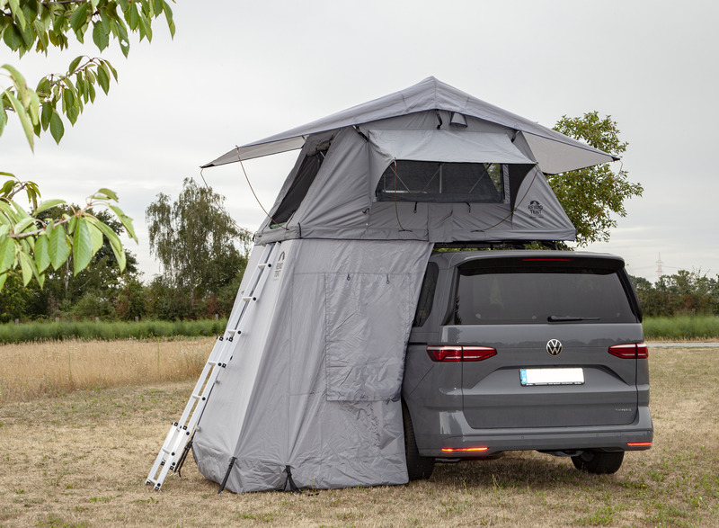 Hartschalen-Dachzelt Columbus Variant – Stoff Grau – Schale Weiß – Medium X-Long