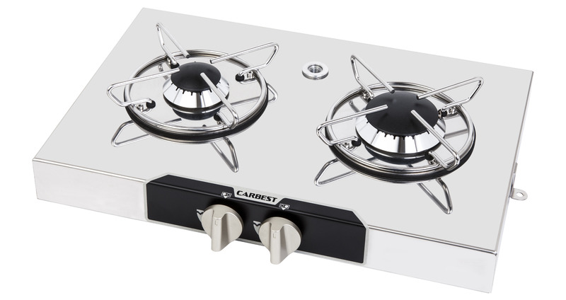 Hochwertiger Carbest Aufbau-Gaskocher 2-flammig mit Zündsicherung und manueller Zündung.
