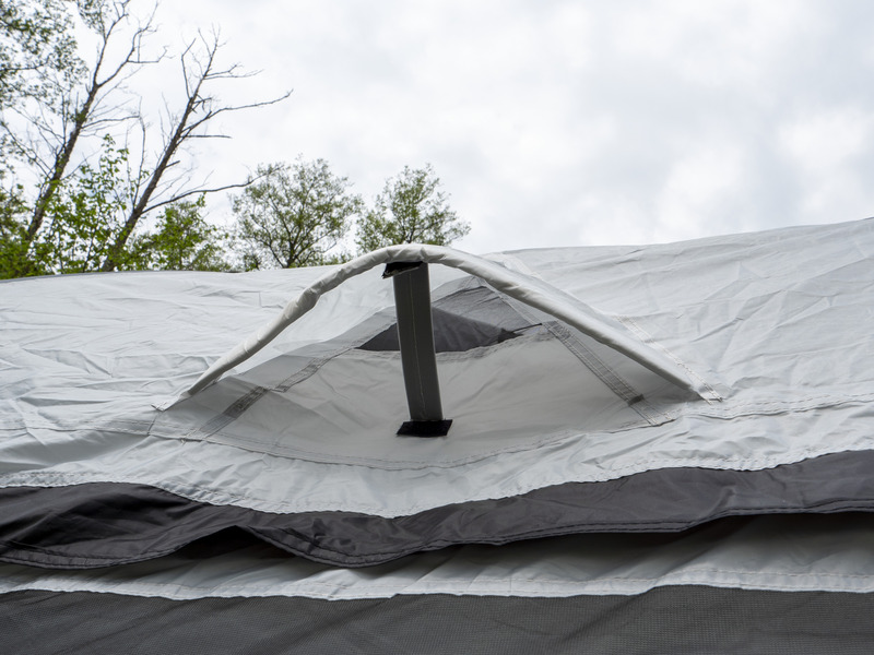 Kreuzkuppeldach-Heckzelt mit Luftschlauchtechnologie, schnell und leicht aufgebaut! Beide Seitenwände und Vorderwand mit Tür, welche auch als Sonnensegel nutzbar sind oder komplett herausgenommen werden können. Gute Luftzirkulation durch Lüftung im Dach und am Boden. Extra lange Schleuse mit Türen auf beiden Seiten (140 cm).