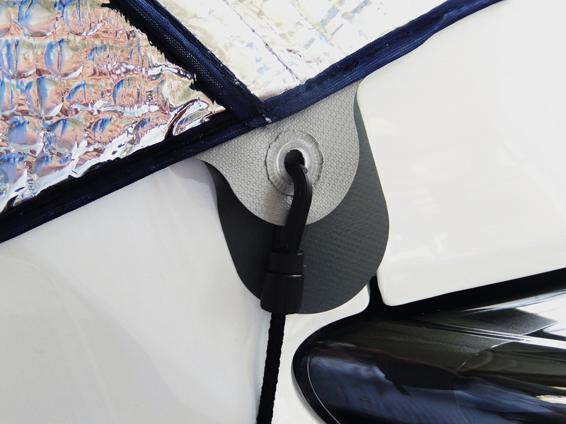 Für Teilintegrierte und Alkovenfahrzeuge. Schutz vor Hitze und Kälte. 1-teilig: Rundum-Isolierschutz des Fahrerhauses. Alubedampfung refl ektiert die Sonneneinstrahlung. Befestigung: Matten werden in den Türkanten eingehängt und abgespannt. Matte abklappbar.