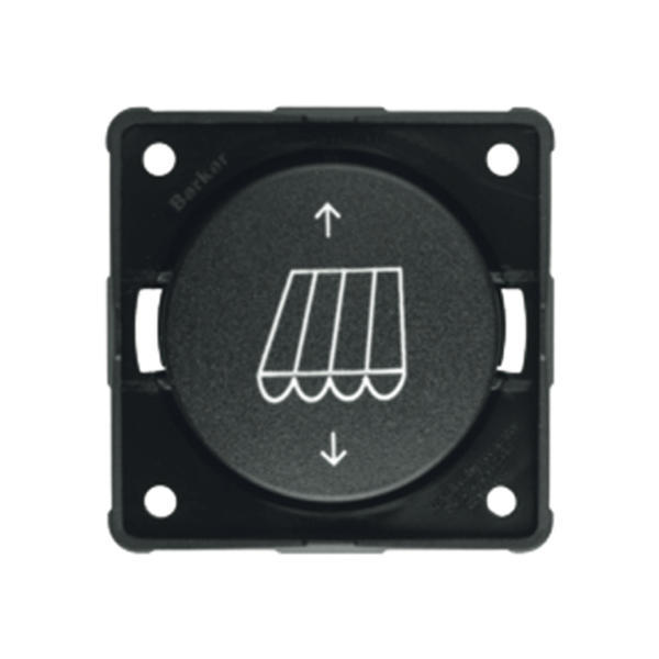Berker INTEGRO Markisen-Wipptaster mit Flachstecker-Anschluss 4,8mm. 12V, 15A bzw. 24V, 0,5A. Zum Öffnen oder Schließen der Markise. Farbe anthrzit. Lose (unverpackt).