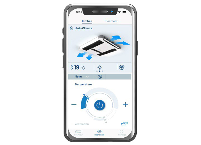✔ Steuerung über das Smartphone (kostenfreie Breezonic App), über das Touchscreen-Bedienfeld an der Luftverteilereinheit oder über die Fernbedienung (optionales Zubehör)