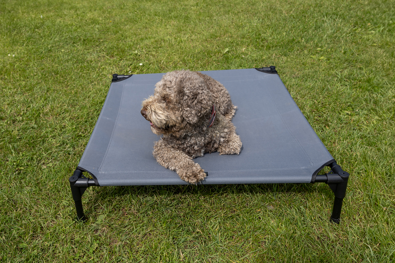 Die Camp4 Hundeliege mit abnehmbarem Sonnendach, bietet Schutz vor Sonnenstrahlen an heißen Sommertagen. Die erhöhte Position sorgt für eine besonders gute Luftzirkulation. Die Liege ist für Hunde bis max. 40 kg geeignet.