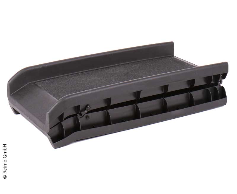 Praktische Einstiegshilfe mit Sicherungshaken. Die Oberfläche ist mit einer antirutsch-Beschichtung versehen.