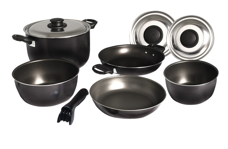 Camping-Topfset – 9-teilig – Silber/schwarz