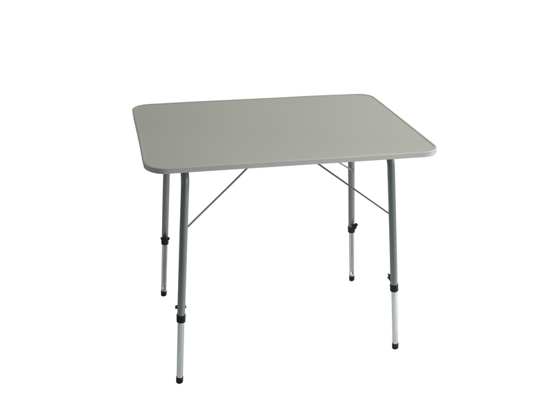 Leichter Campingtisch mit edler silberfarbener Aluminium-Tischkante mit stabiler MDF-Platte und robustem Stahlgestell.