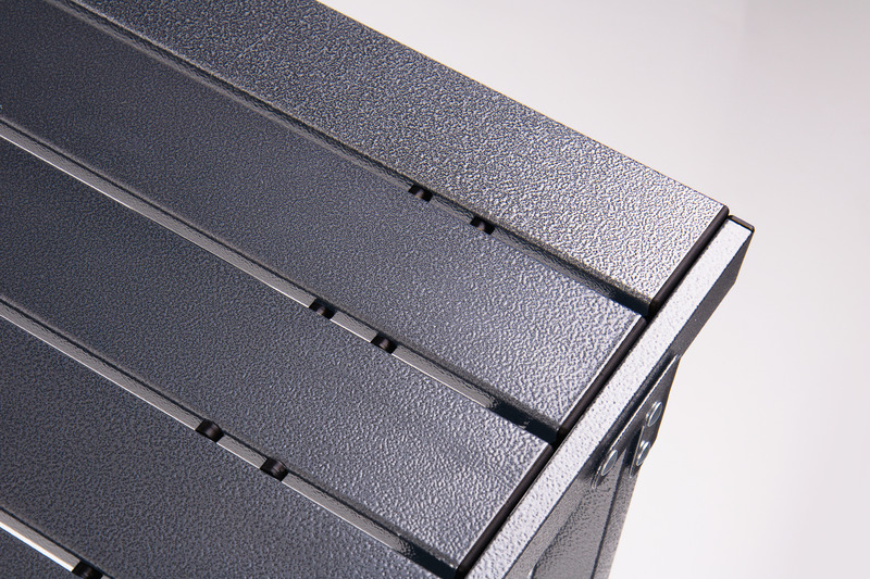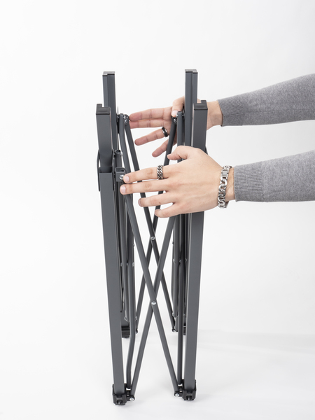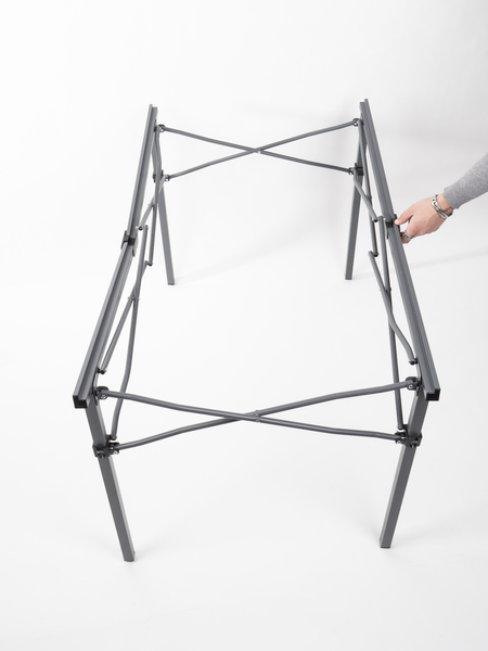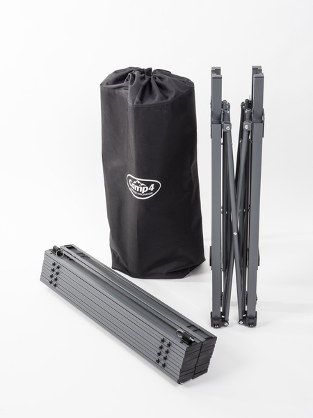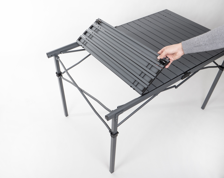Stabiler Aluminium-Rolltisch für 4 bis 6 Personen mit anthrazitfarbener Platte und Aluminiumgestell.
