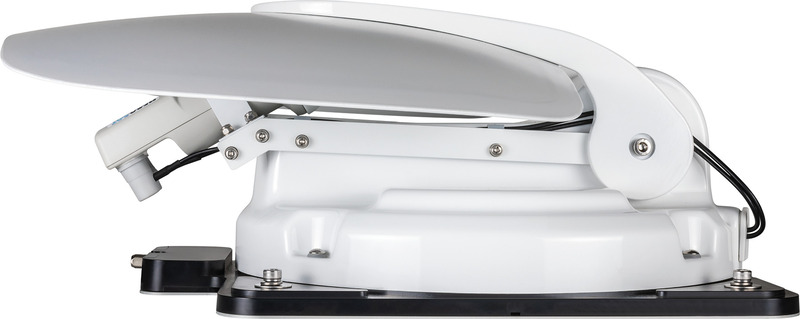 Der Caravanman Kompakt 4 bietet platzsparenden Satellitenempfang im Caravan oder Reisemobil. Per Knopfdruck richtet sich die Antenne automatisch auf den gewünschten Satelliten aus. Ein integrierter GPS-Empfänger ermittelt den Standort und beschleunigt die Ausrichtung durch automatische Neigungsanpassung. Mit nur 17 cm Aufbauhöhe und 77 cm Schwenkbereich passt die Anlage auf fast jedes Fahrzeugdach. Das kompakte Steuergerät enthält fünf vorinstallierte Satelliten (inkl. Astra 1) – Transponder-Updates sind nicht nötig. Die Anlage ist für einen Teilnehmer konzipiert und wird über ein einzelnes Koaxialkabel angeschlossen.