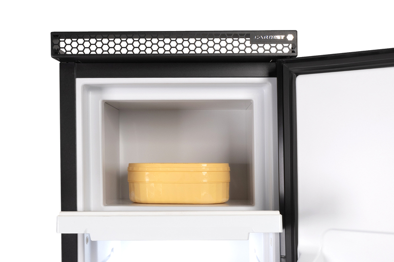 Integrierte Kühlakkus in den Kühlschrank-Wänden speichern Kälte und halten die Kühlung deutlich länger aufrecht bei unterbrochener Stromversorgung oder im ausgeschalteten Zustand. Night Mode: Geringerer Geräuschpegel, reduzierter Stromverbrauch für besseren Schlaf. Integriertes „Vent-Position-System“ verhindert schlechte Gerüche und Schimmelbildung bei Nichtgebrauch dank leicht geöffneter Tür. Gesamtvolumen / Gefrierfach: 136 L / 15 L, Ø Stromaufnahme (12V): 8 A, Ø Leistungsaufnahme Tag/Nacht: 75 W / 45 W, Temperaturbereich Kühlschrank / Gefrierfach: +10° bis 0°C / -15°C. Voraussichtlich lieferbar ab Q2/25.