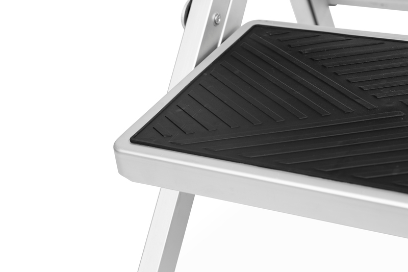 Klappbare Doppeltrittstufe, aus Stahl mit Antirutschbeschichtung.