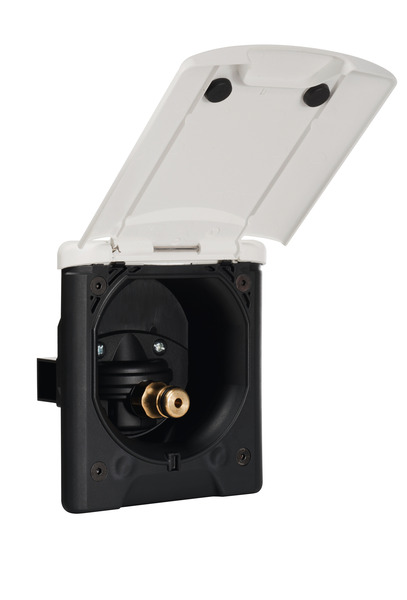 Wassereinfüll-Steckdose mit Druckminderer und mit Magnet-Deckelverschluss.