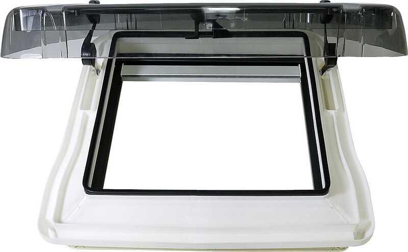 Dachluke mit Moskitonetz und Verdunkelungsrollo