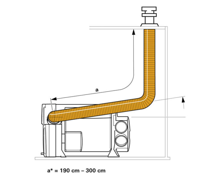 Hinweis: Abgas-, Zuführungsrohr und Schellen separat erhältlich.