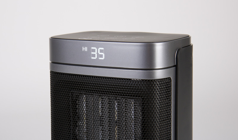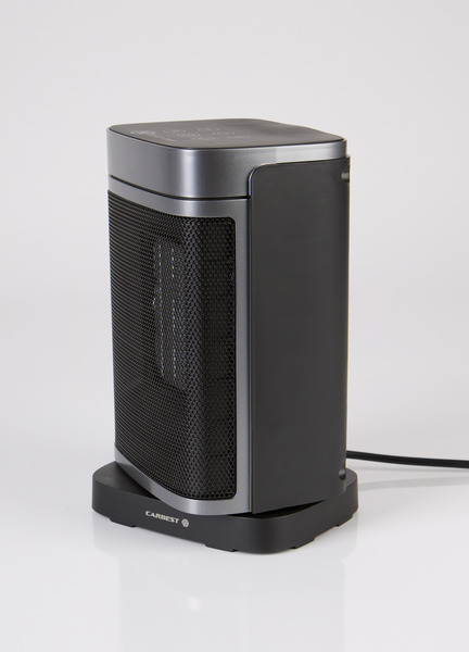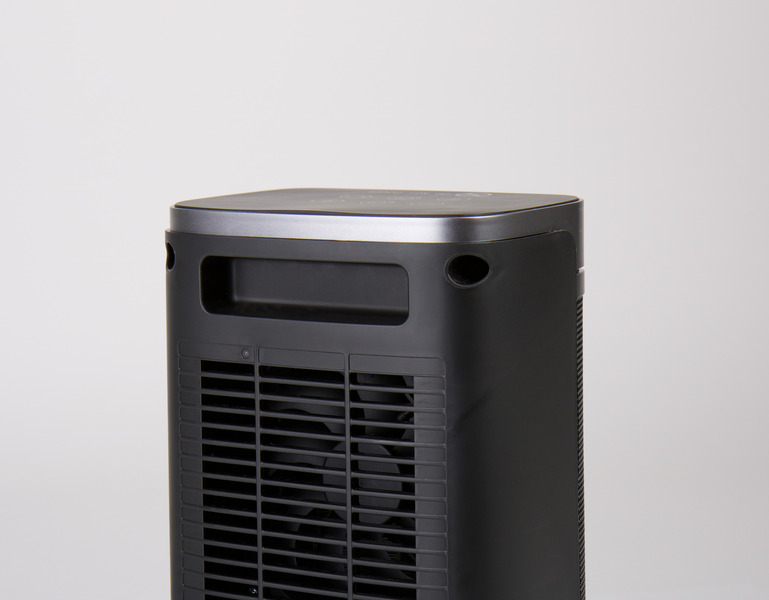 Mit 3 Leistungsstufen: 750/1500/ECO, 230 V. Bedienung über Touch-Feld oder Fernbedingung (im Lieferumfang enthalten). Selbst drehend (oszillierend) mit automatischer Kippsicherung und Überhitzungsschutz. Maße BxTxH ca. 165x125x265 mm.