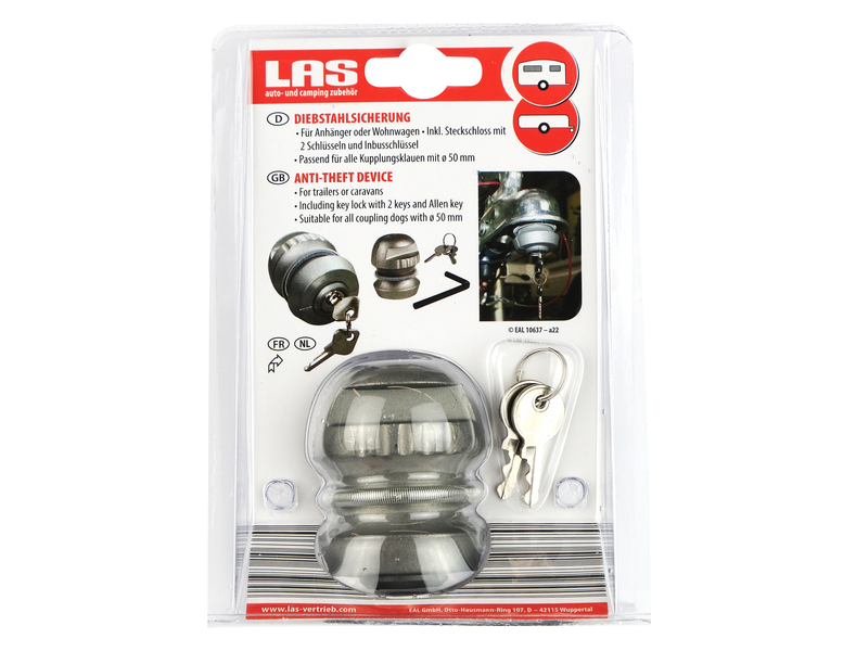 Das Diebstahlschutz-Ei wird in das Kupplungsmaul eingesetzt, mit dem Steckschlüssel gespreizt und mit dem Schließzylinder gesichert. Incl. 2 Schlüssel