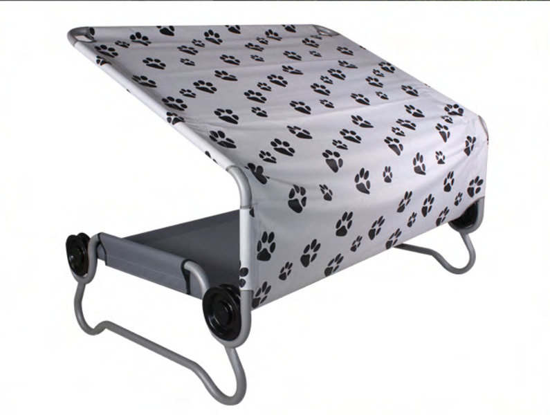 Ob zuhause, auf Balkon, Terrasse, im Garten oder unterwegs im Urlaub auf dem Campingplatz oder im Hotel: der neue Schlaf- und Rastplatz für kleine & große Hunde jeder Rasse und Gewichtsklasse (bis 91kg belastbar) bietet erhöhten Komfort und Schutz vor kaltem, schmutzigem und nassen Boden. Außerdem hat er ein Sonnendach, welches Ihren Liebling vor Sonnenstrahlen und Hitze schützt. Das Bett kann natürlich auch ohne Dach verwendet werden. Der Bezug ist aus waschbarem und wasserabweisendem Material, welches leicht und schnell zu reinigen ist. Aufgrund des kleinen Packmaßes ist das „DOG BED“ auch bestens für Rettungs- und Jagdhunde geeignet.