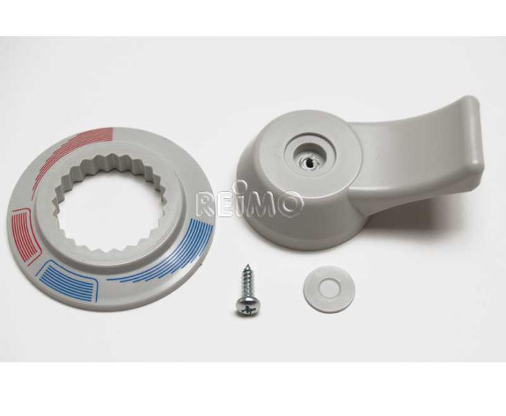 Drehhebel und Rosette für den Einhebelmischer 63046. Hiermit ist die Einstellung konstanter Temperaturen problemlos möglich.