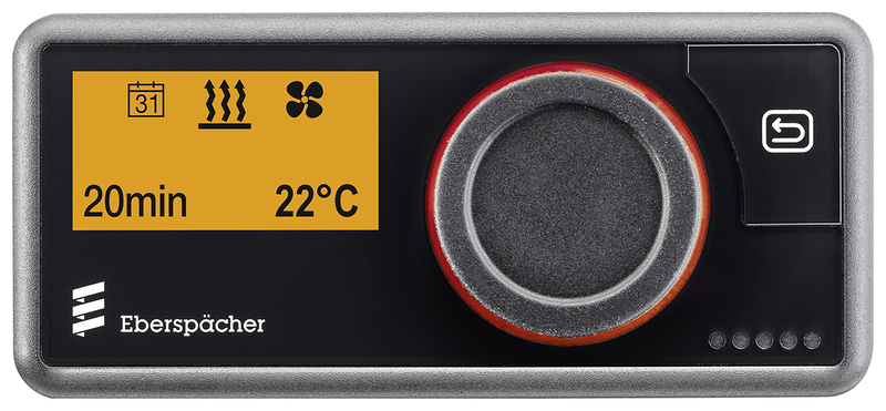 Fest installiertes Bedienelement mit intuitiver Bedienung, Sofort-Heizen über Long-Press, Timer-Funktion sowie integriertem Temperaturfühler für die Heizungs-steuerung. Bedienung von bis zu zwei Heizgeräten separat oder von zwei identischen Heizgeräten (Airtronic oder Hydronic) in einer Gruppe möglich. LED-Farbring zur klaren Statuserkennung. Einfache Diagnosefunktion.