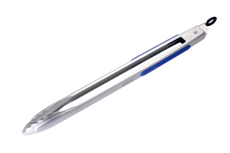 Edelstahl-Grillzange,mit blauem Kunststoff-Handgriff