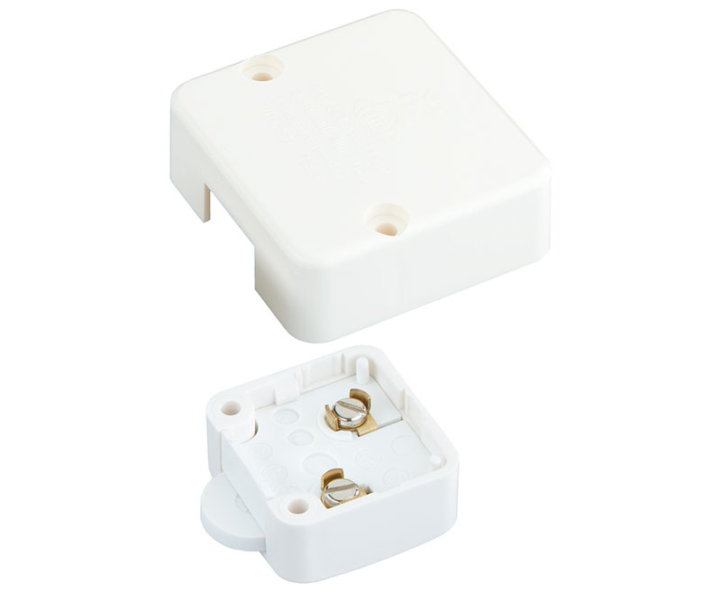Öffner 1-polig, 2A, 250 V mit Zusatzgehäuse. Material: Kunststioff, Farbe: weiß
