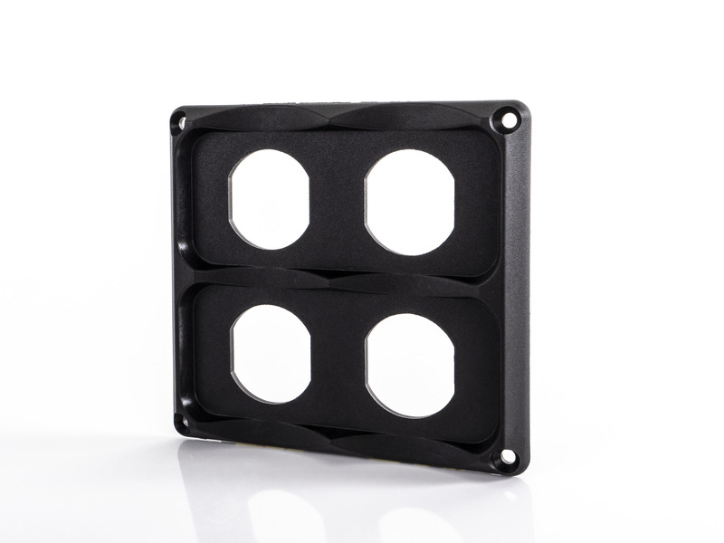Einbau-Frontplatte 4-fach für die Aufnahme von bis zu 4 Steckdosen. Individuell konfigurierbar mit allen CARBEST Powersteckdosen / USB-Steckdosen / Voltmetern.