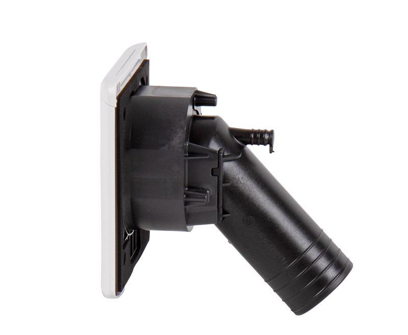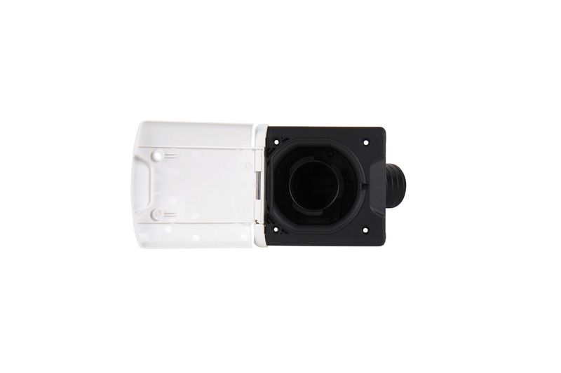 Schlauchanschluss: 50mm, mit Magnet-Klappdeckel. Material: Thermoplast. Farbe Reinweiß (RAL9010). Verwendung nur mit Verschlussdeckel 65245