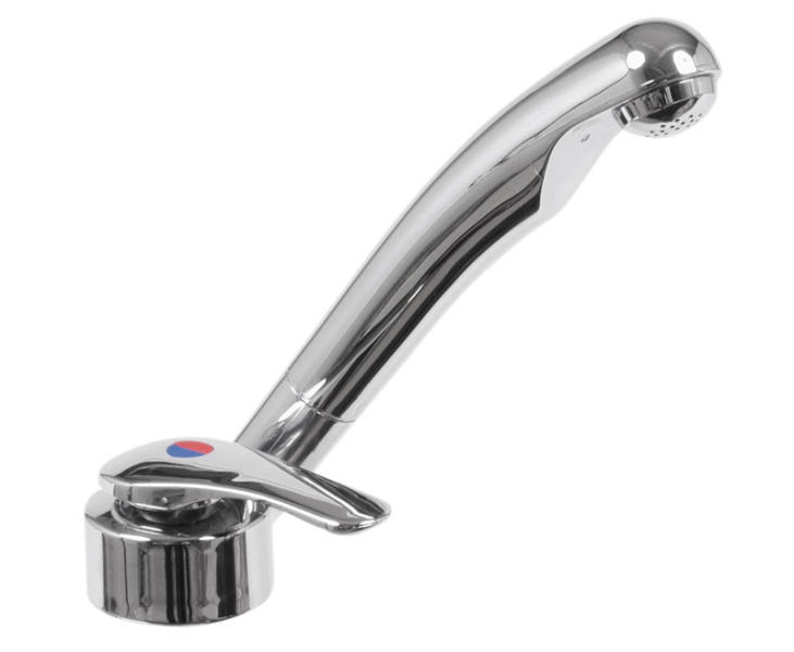 Moderne Kunststoffarmatur für Küche und Waschraum. Keramikkartusche. Lieferbar mit und ohne Automatikschaltr. Teilweise mit Schlauchanschlüssen zur Montage in der Arbeitsplatte, ohne umständliche Verrenkungen. Serienprodukt bei Adria. Auslaufrohr dreh- und schwenkbar. Druckbeständig. Temperaturfest.