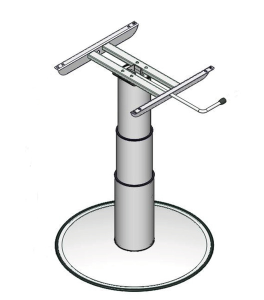 Einsäulen Hubtischgestell mit 375 mm Hub. Höhenverstellbar von mindestens 320 mm bis maximal 695 mm. Freistehend.