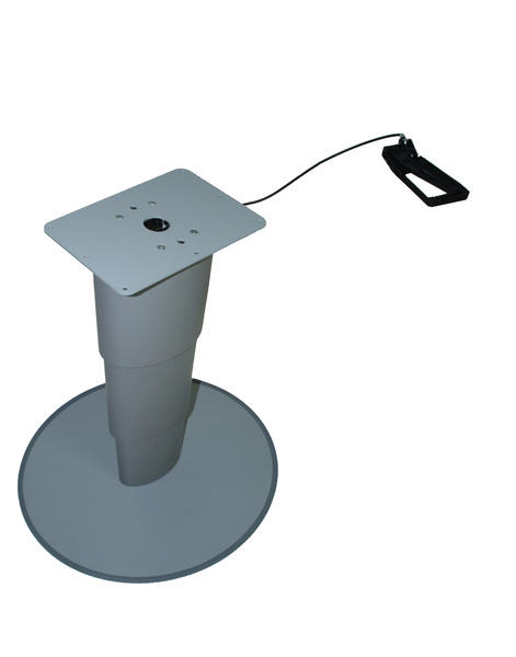 Hubtischgestell mit stufenloser Höhenverstellung von 315-675 mm. Selbststehend auf großem Fußteller, dadurch flexibel einsetzbar. Gestell mit hochwertiger, robuster Pulverbeschichtung in elegantem Silbergrau.