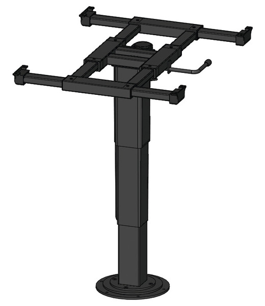 Verschiebbare Tischplatte, Tischverdrehung um 360°. Längsverschiebung ca. 270 mm, Querverschiebung ca. 235 mm.