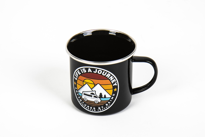 Der Kaffee am Morgen schmeckt aus dieser Tasse sowohl im Camper, im Zelt, zu Hause, auf der Terasse, auf Festivals etc. Die dickwandige Emaille-Tasse mit Henkel verspricht Premium-Trinkgenuß und eine lange Lebensdauer. Mit farbigem Emblem-Aufdruck auf schwarzer Emaille. Lebensmittelecht und spülmaschinengeeignet (bei niedriger Temperatur).