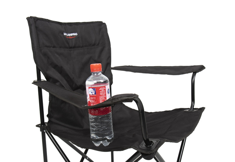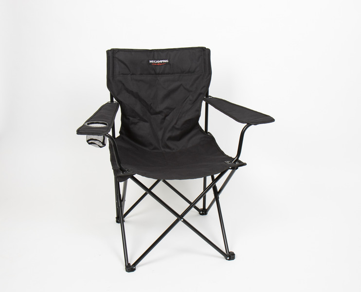 Der bequeme Faltstuhl Mahalo ist mit einem Handgriff zusammengefaltet und geöffnet. In einer der beiden Armlehnen befindet sich ein Becherhalter. Das stabile Gestell aus schwarzem pulverbeschichtetem Stahl und das hochwertige schwarze Polyestermaterial machen diesen Stuhl zum Klassiker unter den Campingstühlen.