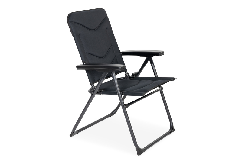 Der Klappstuhl FERRARA ist mit seinem Packmaß perfekt für Mini-Camper und Campingbusse mit geringem Stauraum, bietet aber dank seiner bequemen Polsterung und der verstellbaren Rückenlehne hohen Komfort.