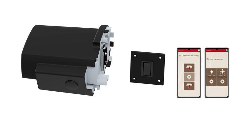 Bedienen Sie Ihre Markise bequem von Ihrem Smartphone aus. Dank der praktischen Fiamma App (für Android- oder iOS-Systeme) können Sie das Öffnen und Schließen der Markise F80L von Ihrem Smartphone aus steuern. Motor mit geringen Abmessungen, einfacher Konstruktion, Zuverlässigkeit und hervorragender Leistung.